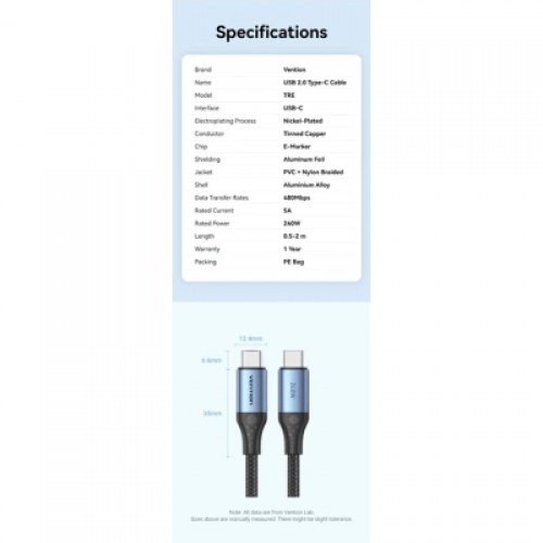 Цей кабель Vention USB-C на USB-C розроблений для забезпечення зарядки нового покоління, підтримуючи новітній стандарт Power Delivery 3.1 для вражаючої вихідної потужності до 240 Вт. Створений для користувачів високопродуктивних пристроїв, таких як MacBook Pro 16", ігрові ноутбуки та флагманські смартфони, як-от серія Samsung S23 Ultra або iPhone 15, він гарантує максимально швидке та безпечне живлення вашої електроніки. Довжина 1,5 метра забезпечує ідеальний баланс між гнучкістю та радіусом дії, що робить його придатним для настільних комп’ютерів, зарядки біля ліжка або подорожей. Виготовлений з конекторами з алюмінієвого сплаву преміум-класу та міцним нейлоновим обплетенням ззовні, цей чорний кабель поєднує в собі елегантний естетичний вигляд і надзвичайну довговічність, щоб витримувати суворі умови щоденного використання, забезпечуючи при цьому ефективну синхронізацію даних.