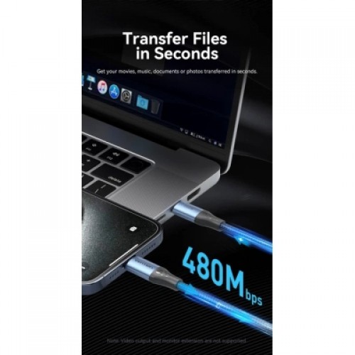 Цей кабель дозволяє заряджати пристрої та передавати дані на швидкості USB 2.0 (480 Мбіт/с), але не підтримує виведення відеосигналу або підключення моніторів. Щоб використовувати повну зарядну здатність 240 Вт, і підключений адаптер живлення, і пристрій повинні підтримувати протокол PD 3.1 зі специфікацією 48 В / 5 А, інакше швидкість заряджання адаптується до максимальних обмежень використовуваного обладнання. Кабель оснащений конекторами USB-C на обох кінцях, що означає, що він несумісний зі стандартними мережевими зарядними пристроями USB-A і вимагає порту USB-C для підключення.
