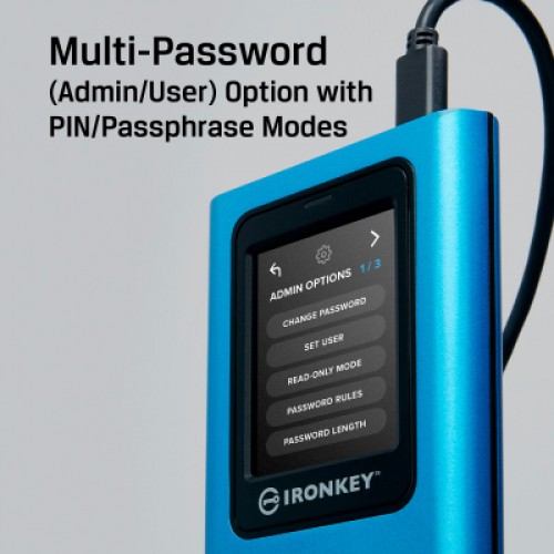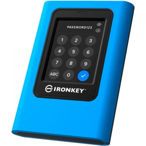 Зовнішній твердотільний накопичувач Kingston IronKey Vault Privacy 80 із сертифікацією FIPS 197 і 256-бітним шифруванням XTS-AES Зовнішній твердотільний накопичувач Kingston IronKey Vault Privacy 80 — це перший інноваційний зовнішній твердотільний накопичувач із апаратним шифруванням із сенсорним екраном і сенсорним екраном для захисту даних.