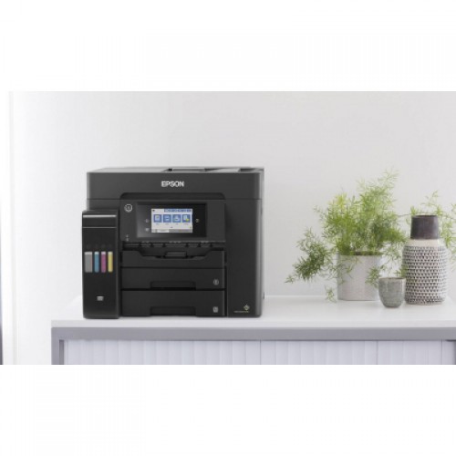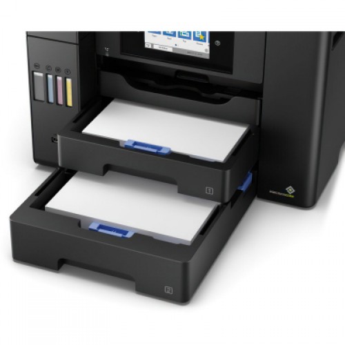 БФП Epson L6550 – пристрій для бізнесу, розрахований на високі навантаження друку. При заповненні ємності для відпрацьованих чорнил користувач може легко замінити її самостійно, не звертаючись в сервісний центр.