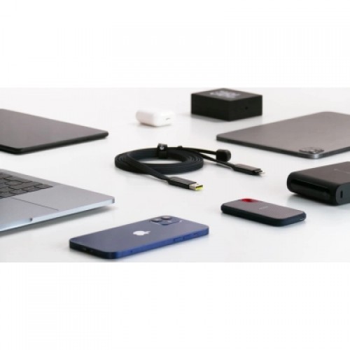 inCharge XL — многофункциональный кабель для зарядки и передачи данных, благодаря 6-ти возможным комбинациям соединений и длине 3 м заменяет сразу несколько разных кабелей и подходит как для мобильного использования, так и для стационарной работы с ноутбуками, мониторами или павербанками. Поддерживает сверхбыструю зарядку до 100 Вт и зарядку устройств Apple до 27 Вт. Универсальное решение для дома, офиса и путешествий – один кабель вместо нескольких.