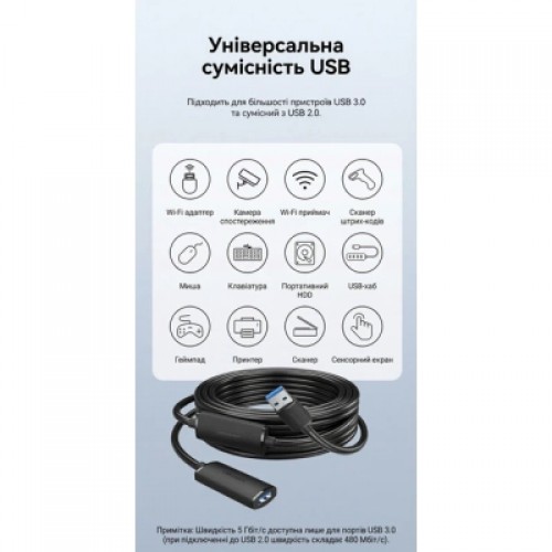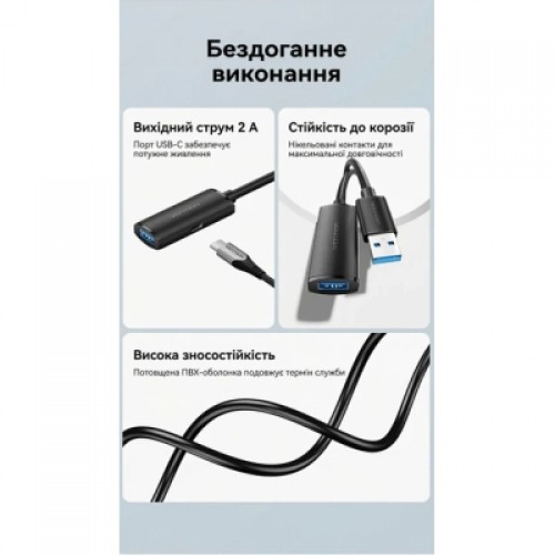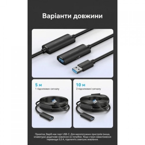 Активный удлинительный кабель Vention USB 3.0 (5 м, 5 Гбит/с, с дополнительным питанием USB-C)