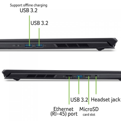 Подключение остается быстрым и надежным благодаря поддержке WiFi 802.11ax, Bluetooth и Gigabit Ethernet. Ноутбук также оснащен разными портами и слотом для microSD, обеспечивающим гибкость подключения. Клавиатура с четырьмя зонами RGB-подсветки и поддержкой NitroSense позволяет настраивать систему в реальном времени, а такие функции как Acer PurifiedView и PurifiedVoice 2.0 улучшают качество видеозвонков и записи звука с помощью ИИ.